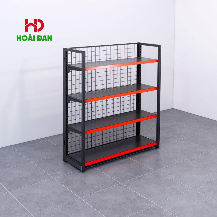 Đây là mẫu kệ quốc dân và được ưa chuộng nhất nhờ thiết kế thoáng đãng, giá thành phải chăng và lắp đặt dễ dàng. Lưng lưới giúp không gian cửa hàng luôn thông thoáng, dễ quan sát và có thể kết hợp thêm các loại móc treo tiện lợi.