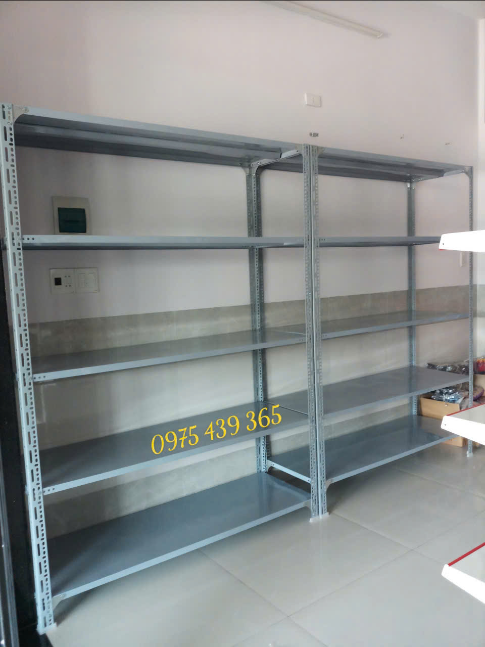 Kết cấu vững chắc: thép V lỗ dày, lắp ráp bằng bulong, an toàn khi để hàng nặng.